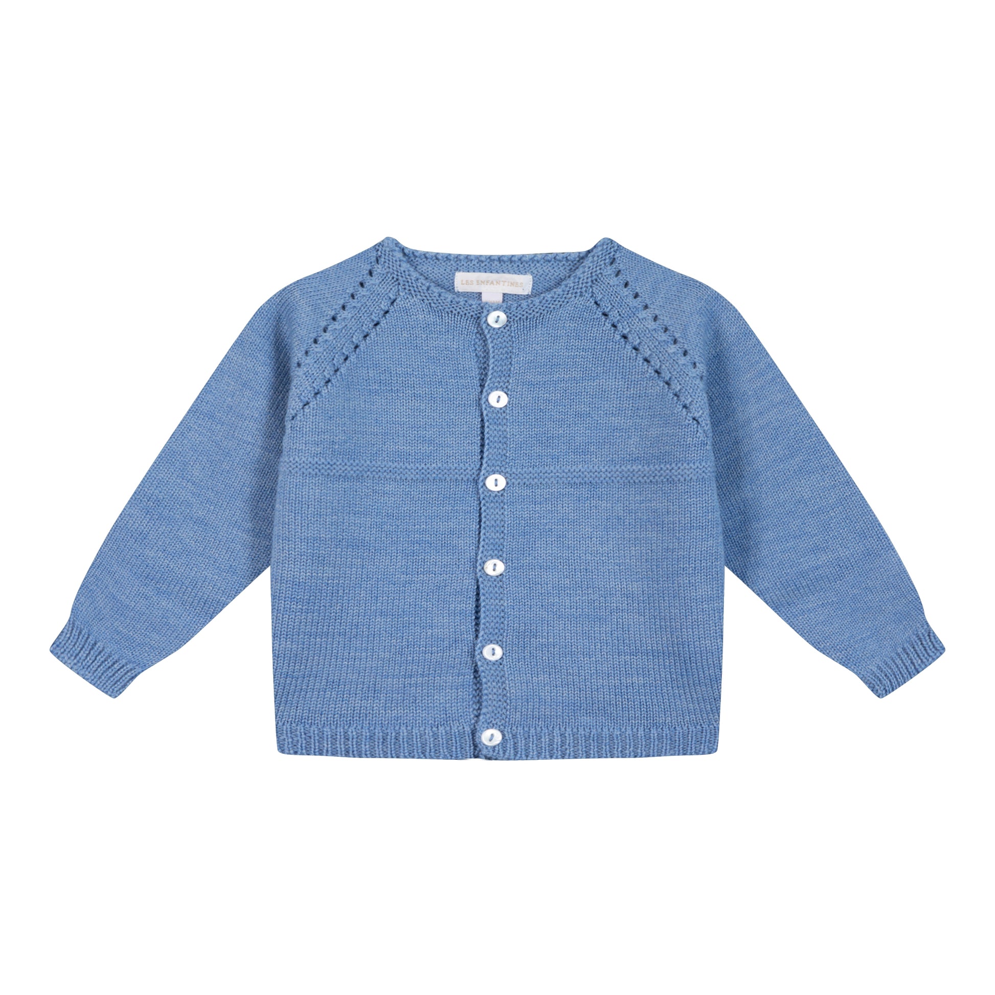 Ce cardigan est en 100% laine mérinos, bleu nuage avec de jolis boutons nacre.